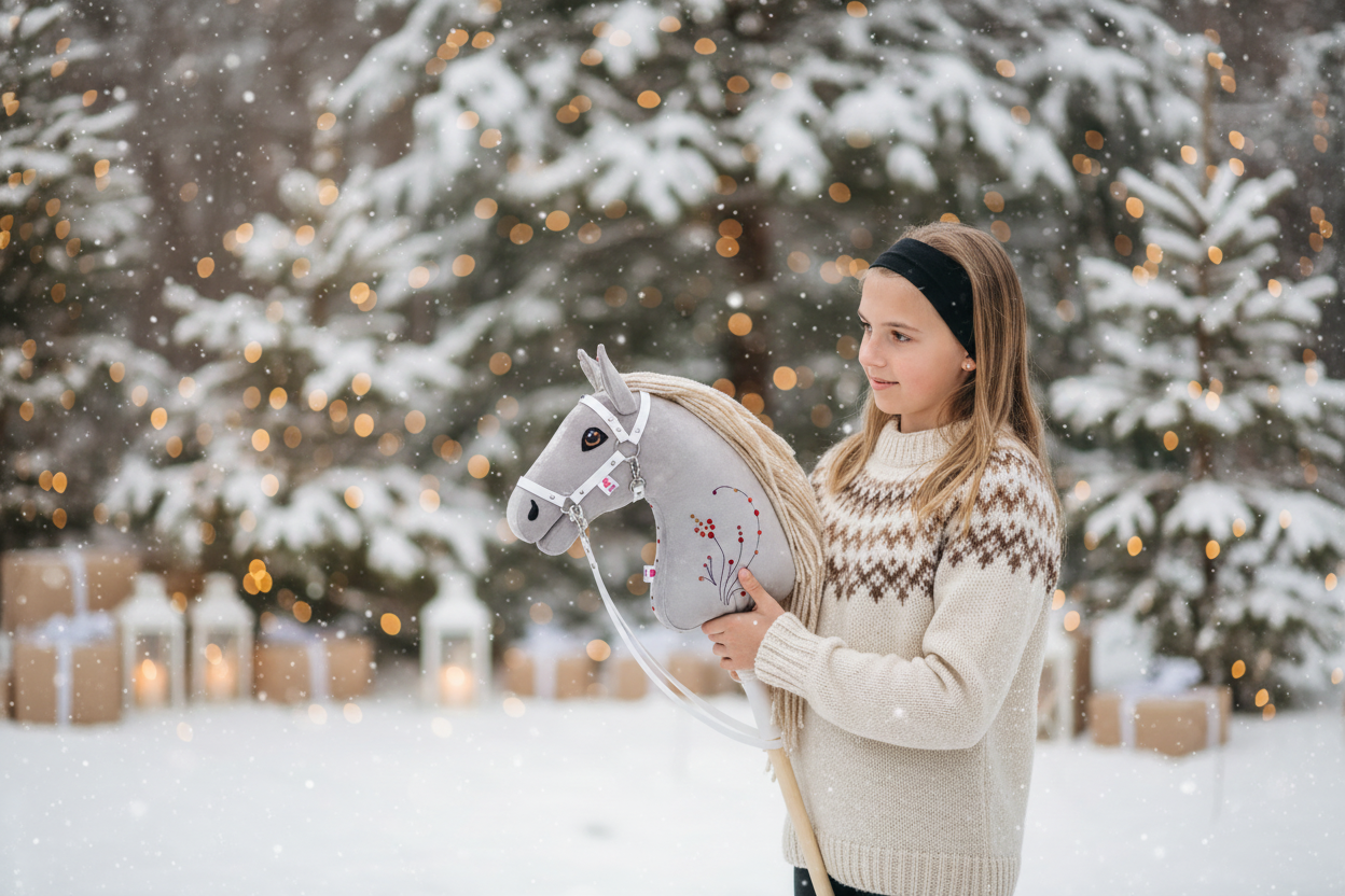 Our hobby horses, with non-slip grips, are made of very beautiful, high quality materials. Every hobby horse is sold with a halter and reins. We limit the use of plastics and carefully pack every hobby horse for transport in a free original JUHI backpack decorated with Swarovski gems. All products are made in the Czech Republic. We are proud to employ people with disabilities, who are involved in the whole manufacturing process.