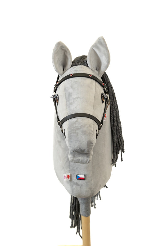 Halter with lamb fur Eco leather - Black old brass - Foal