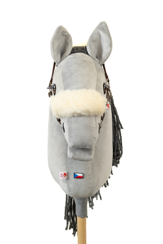 Halter with lamb fur Eco leather - Brown silver - Adult horse