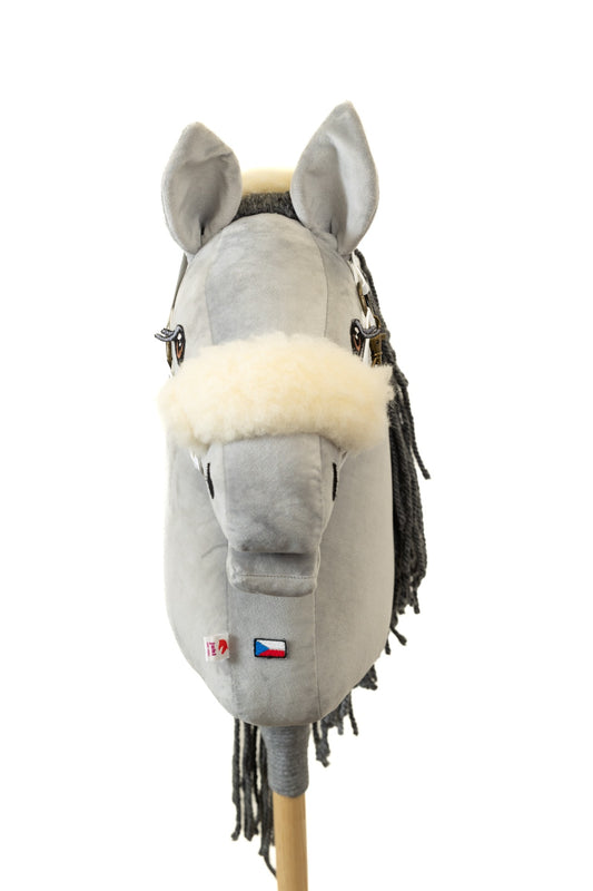 Halter with lamb fur Eco leather - Black silver - Adult horse