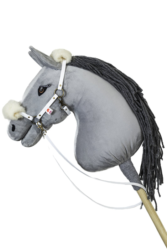 Halter with lamb fur Eco leather - White silver - Adult horse