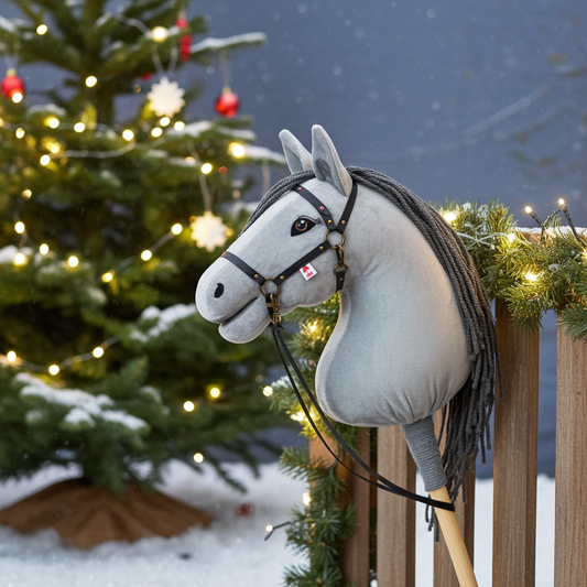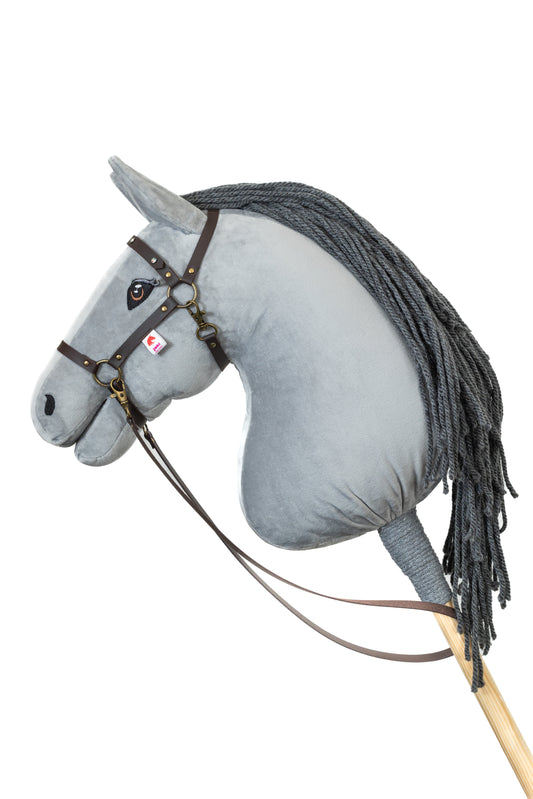 Halter with lamb fur Eco leather - Brown old brass - Adult horse