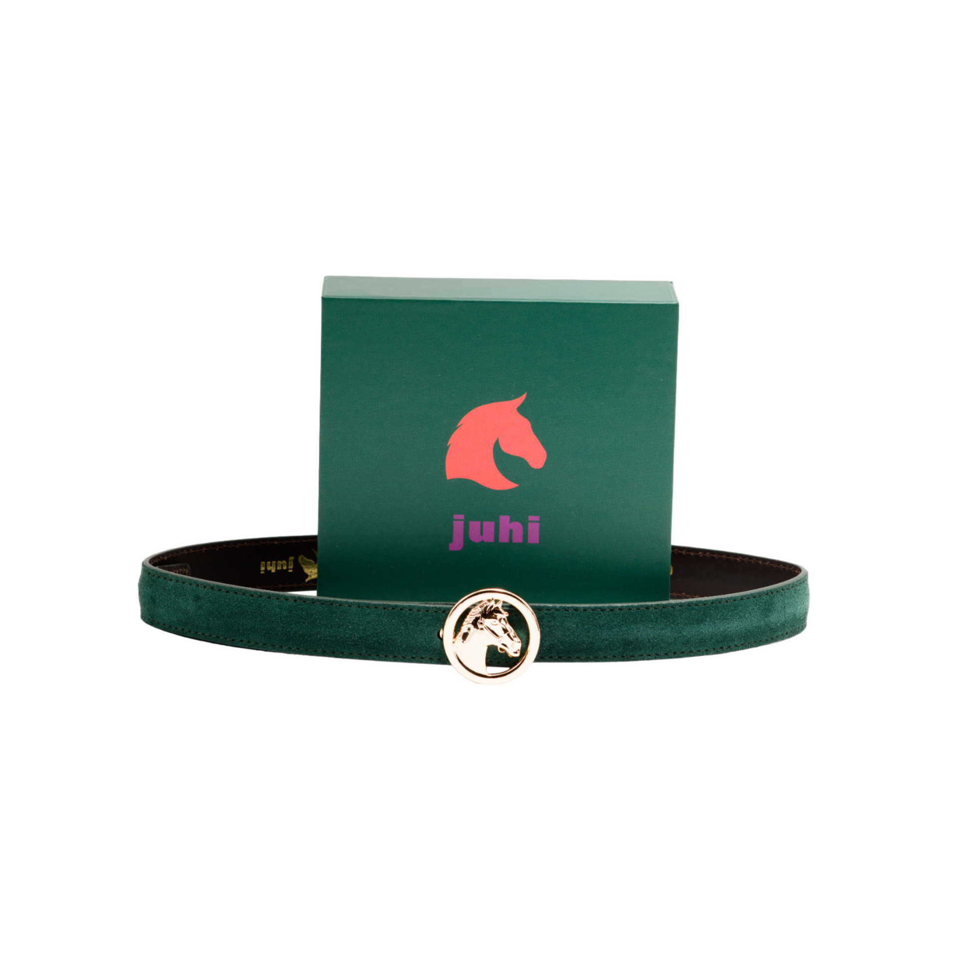 Inspired by the noble elegance of equestrian sports, this beautiful belt with interchangeable buckle is a stunning addition to any outfit. Buckle in the shape of a golden horse head.