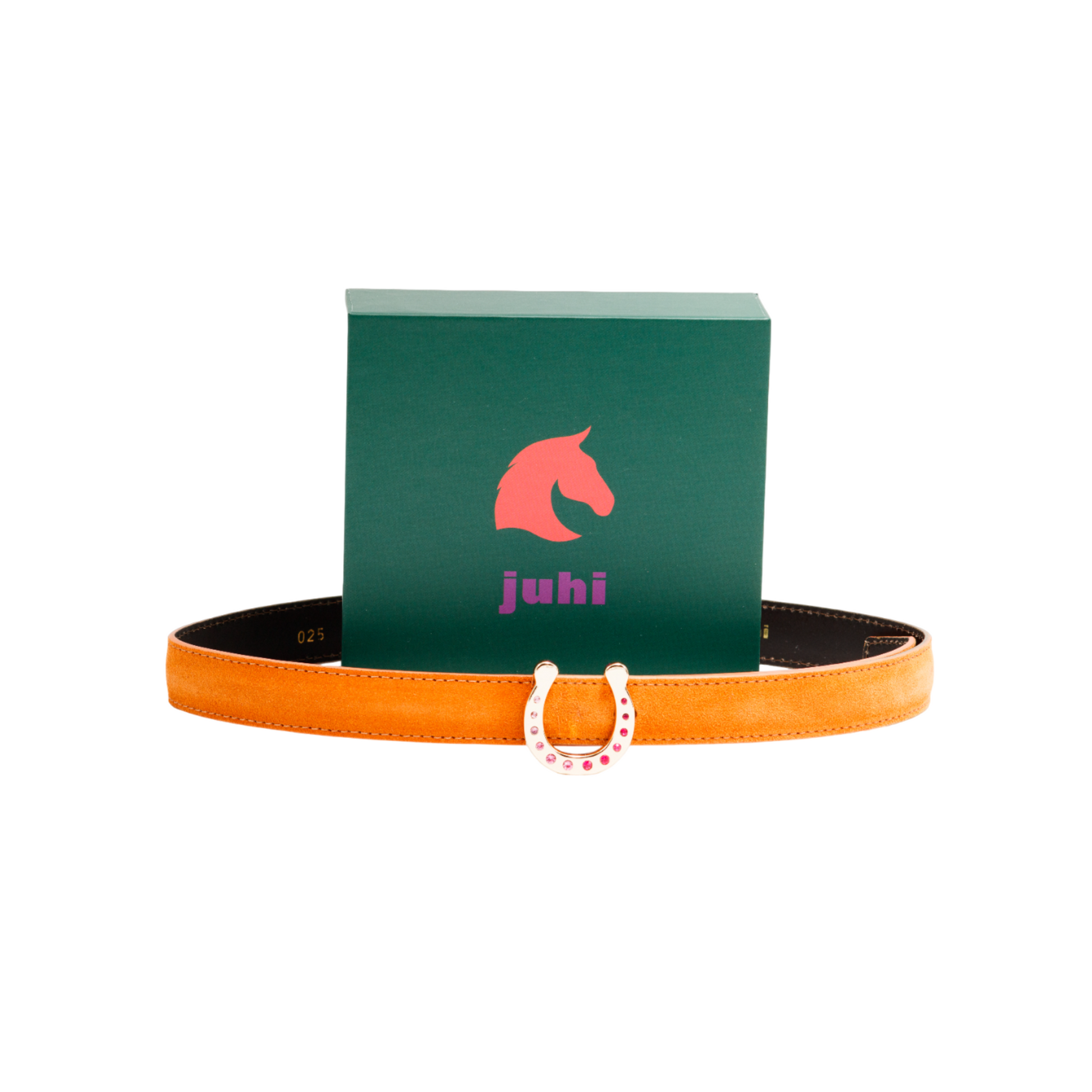 Orange belt with changeable gold horseshoe buckle with Swarovski stones