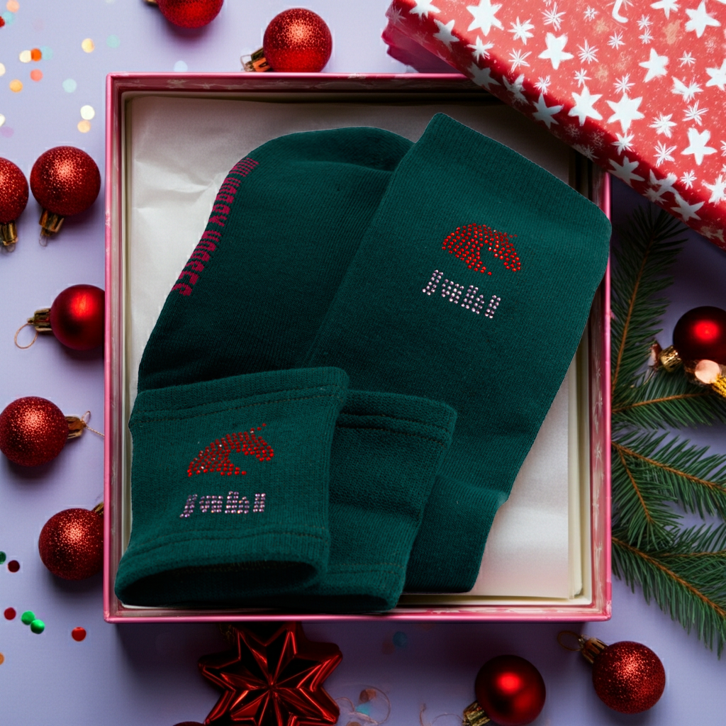 Sweat wristbands and knee socks SET for hobbyhorsing dark green